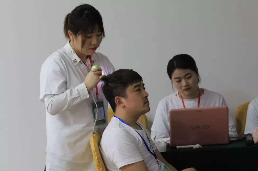 使用儷真產(chǎn)品后·頭皮檢測! 現(xiàn)場對使用儷真洗發(fā)水的學(xué)員頭皮進行監(jiān)測, 自帶油性發(fā)質(zhì)和頭皮屑較多的學(xué)員, 使用儷真洗發(fā)水后的頭皮非常健康, 發(fā)根毛囊干凈完整, 發(fā)質(zhì)強韌有光澤且沒有頭皮屑。